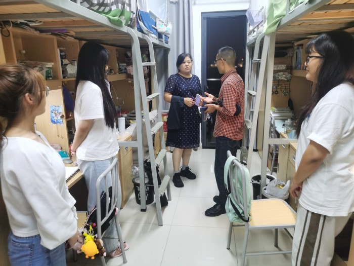 在军训期间,学院党委副书记尹春苹代表学院两次看望慰问军训教官,走访学生宿舍,鼓励参训学生要坚定意志,吃苦耐劳,在军训这一堂大学第一课上锻炼自身身体素质,锤炼品格,为大学生活开个好头。