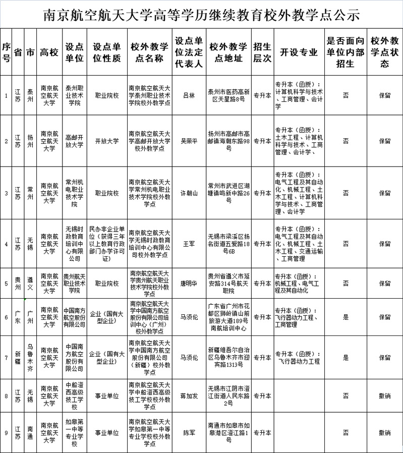 根据《省教育厅办公室关于开展高等学历继续教育自查和校外教学点备案工作的通知》(苏教办高函〔2022〕25 号)要求,现将我校高等学历继续教育校外教学点进行公示: