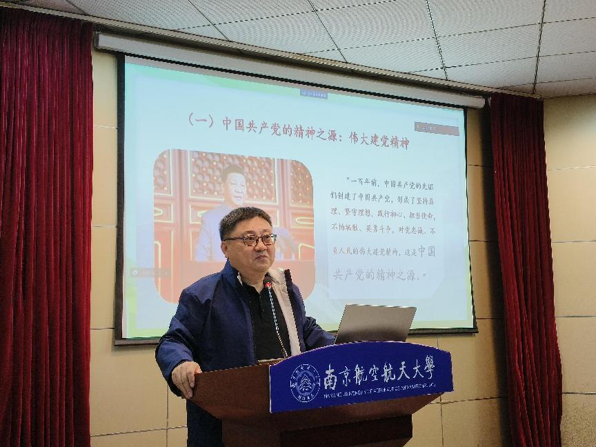 平旭从中国共产党精神之源讲起,从坚持真理、坚守理想,践行初心、担当使命,不怕牺牲、英勇斗争,对党忠诚、不负人民四个方面深入阐述了伟大建党精神,讲述了李大钊、方志敏等革命先辈如何为祖国站起来而前赴后继献出生命的,讲述了“中国龙芯之母”黄令仪80岁仍坚持工作的感人事迹,讲述了吴继周、吴希明、石屏等南航人如何为了责任和使命投身航空强国梦的。他指出,不同历史时期所形成的革命精神,有其独特的内涵和鲜明的时代特征。同时,中国共产党人的精神谱系是一个整体,具有一脉相承、交融互通的共生特质,蕴含了共同的精髓要义:理想、忠诚、奉献、奋斗、创新。他强调正是因为有了这些英雄们的无私奉献,我们才能享受到当下的宁静平和,他勉励大家一定要珍惜这来之不易的幸福,并珍惜时光,勤奋学习、努力工作,以实际行动践行入党初心。