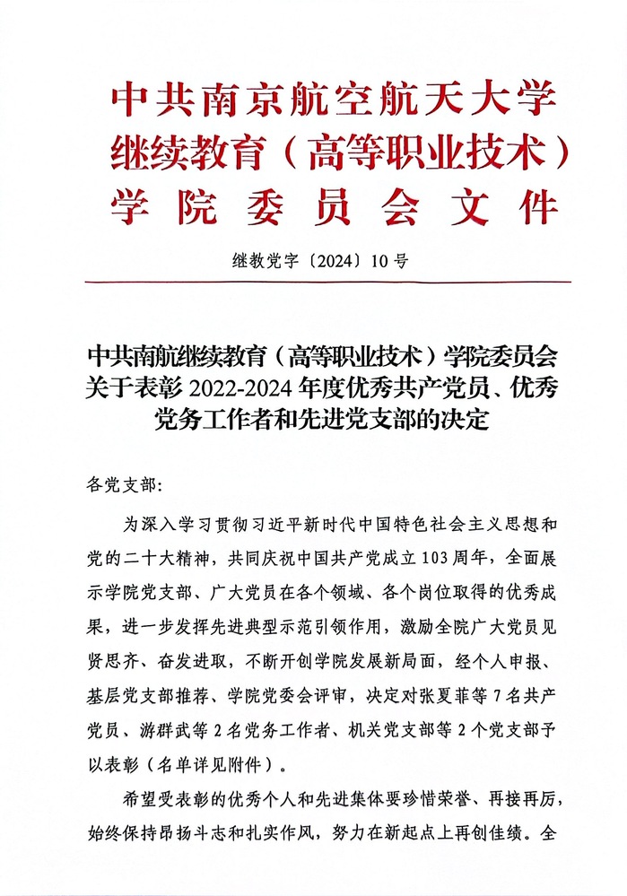 关于表彰2022-2024年度优秀共产党员、优秀党务工作者和先进党支部的决定