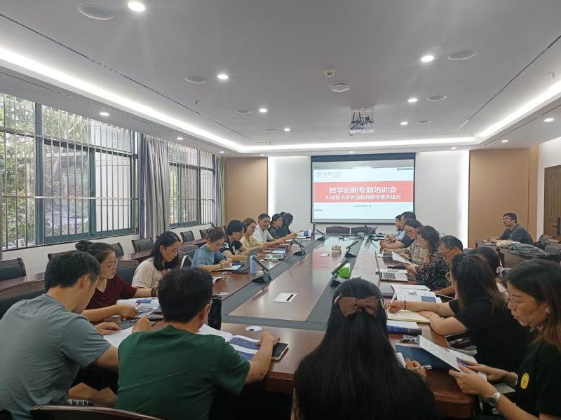 9月13日,我院开展教师教学专题培训会,主题聚焦AI赋能大学英语教师数字素养提升。培训会由学院副院长江爱华主持,邀请了江苏瞰风信息科技有限公司总经理陶璐、蓝鸽集团江苏地区总经理刘聪等嘉宾主讲,应用外语系、国际合作办公室、自学考试部30余人参加培训。