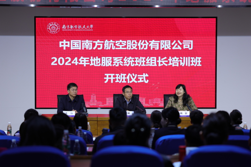 中国南方航空股份有限公司地面服务保障部党委书记姚㛃同志,我校党委副书记、纪委书记杭育新同志出席开班仪式并致辞。杭育新书记对远道而来的各位优秀班组长表示热烈欢迎,简要介绍了我校办学历程及学术成就,并勉励学员们充分利用南航丰富的教育资源,“主动学习,积极交流,碰撞思想”,为南方航空公司地服系统高质量发展贡献智慧和力量。姚㛃书记对我校的精心组织与安排表示感谢,她强调了组织此次培训班的重要意义,并期望学员们通过系统学习,提升地服系统班组长管理水平和沟通能力,推动班组建设工作全面提质增效,打通基层管理的最后一公里。
