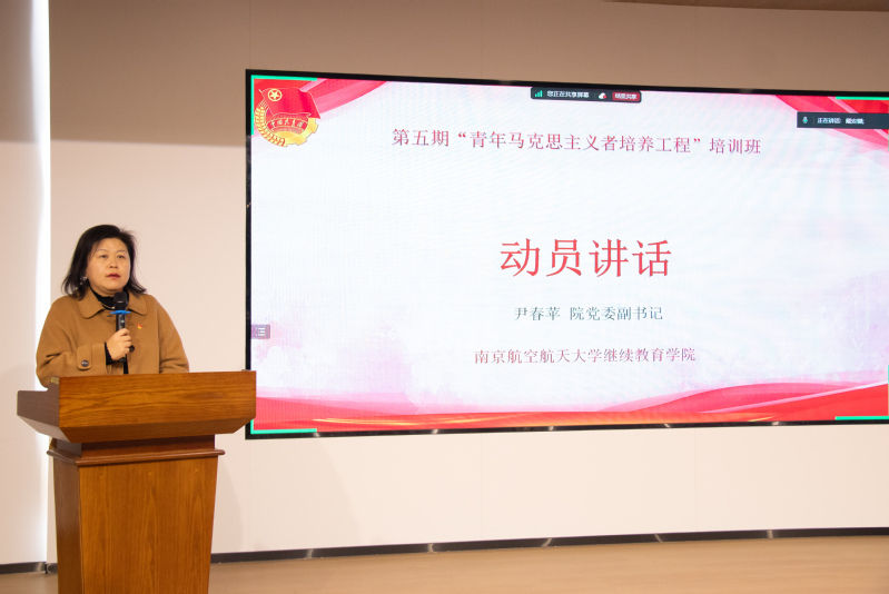 学院党委副书记尹春苹在开班仪式上作动员讲话,她对培训班顺利开班表示了祝贺,鼓励全体学员坚定不移听党话、跟党走,自觉用党的创新理论武装大脑,能够珍惜学习机会,将培训班上的所学、所思、所悟转化为自己的实际行动,努力成长为一名政治素养强、能力水平高、作风品格优的青年学生骨干,确保参加培训取得实效。