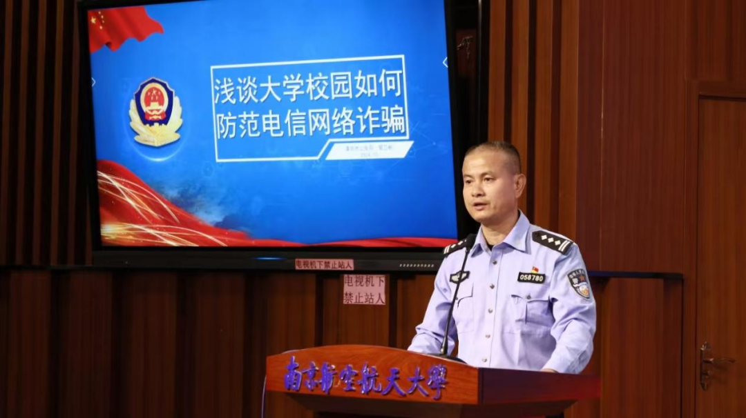 天目湖校区党工委副书记、学生处副处长贡海俊发表讲话。他强调,反诈不仅是一项技术活,更是一场心理战。在校师生需要不断提高防范意识,进一步筑牢学校防范电信网络诈骗的坚固屏障,守护校园安全。师生也需要充分了解法律、敬畏法律、遵守法律,有效地运用法律手段来维护自己的合法权益。