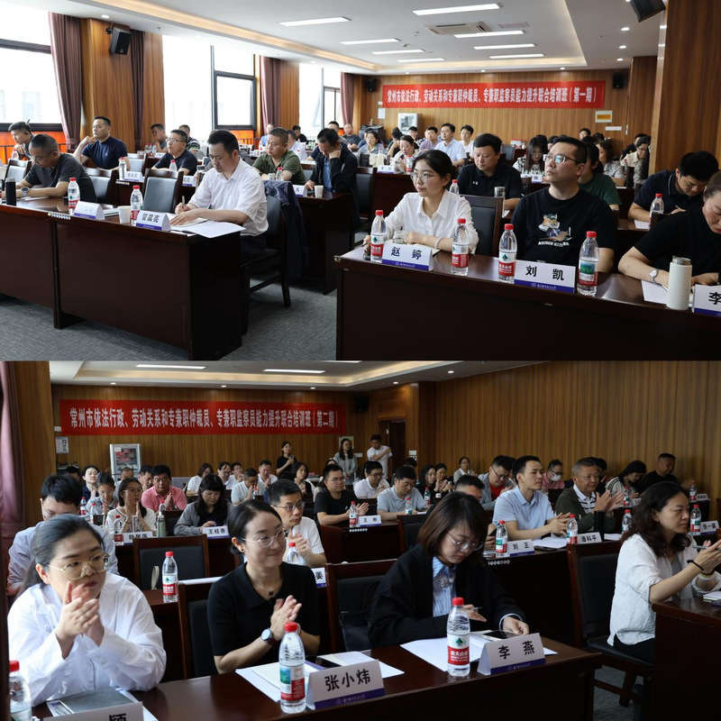 为积极响应国家法治建设号召,深入贯彻习近平法治思想,大力推动地方人社系统专业素养提升,红是一世手机版足球网培训部成功承办了常州市依法行政、劳动关系和专兼职仲裁员、专兼职监察员能力提升联合培训班。本次培训分两期于5月19日至5月30日在我校天目湖校区圆满举行,吸引了相关部门及岗位124名学员参与。