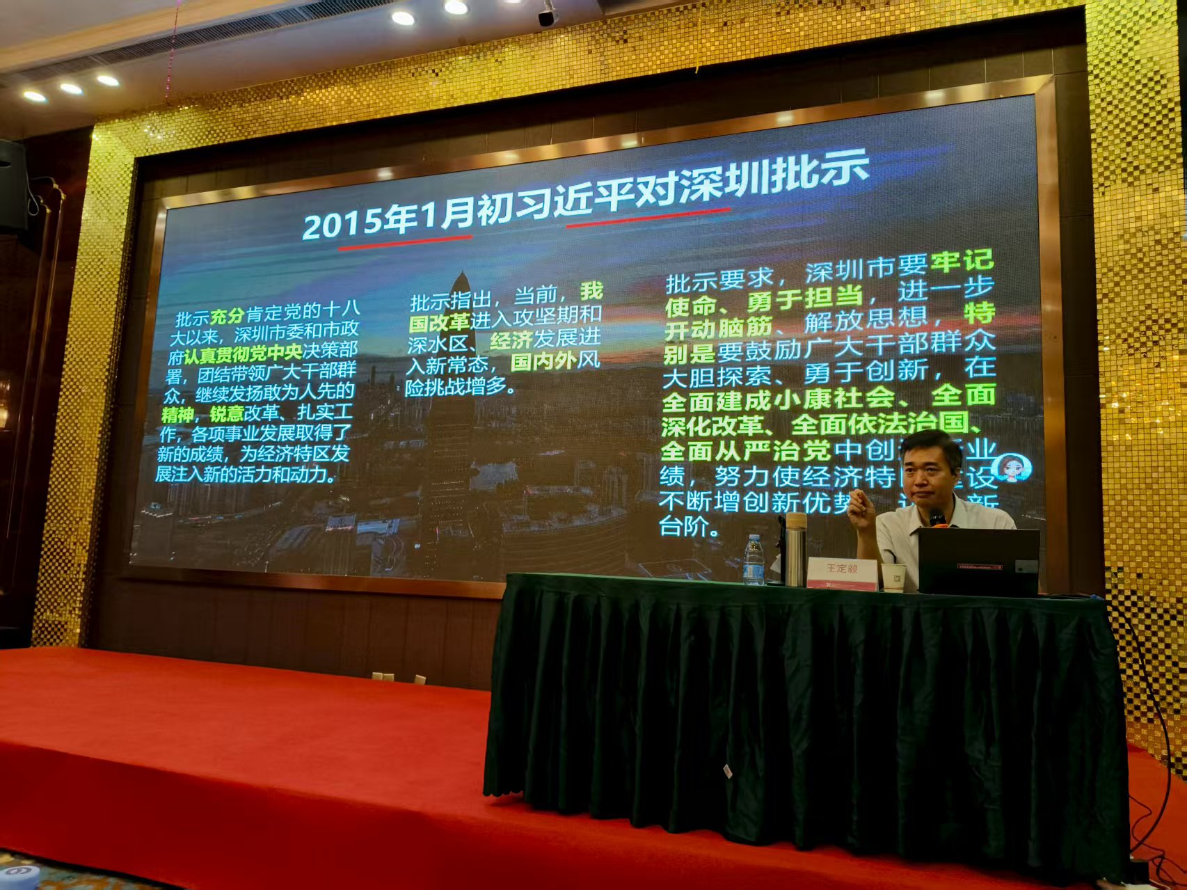 在专题讲座环节,深圳市机场(集团)有限公司数字化管理中心刘明东作了题为《数字化转型驱动智慧机场建设高质量发展》的精彩分享,通过详实的案例与前沿的理论,阐述了数字化在现代企业管理中的核心作用,为学院在信息化建设与管理创新方面提供了新思路。深圳市委党校教授王定毅以《弘扬“特区精神”,续写更多春天的故事》为题,深入解读了特区精神的内涵与时代价值。党员干部们在聆听中深受鼓舞,进一步理解了敢闯敢试、敢为人先的特区精神对于推动事业发展的重要性。