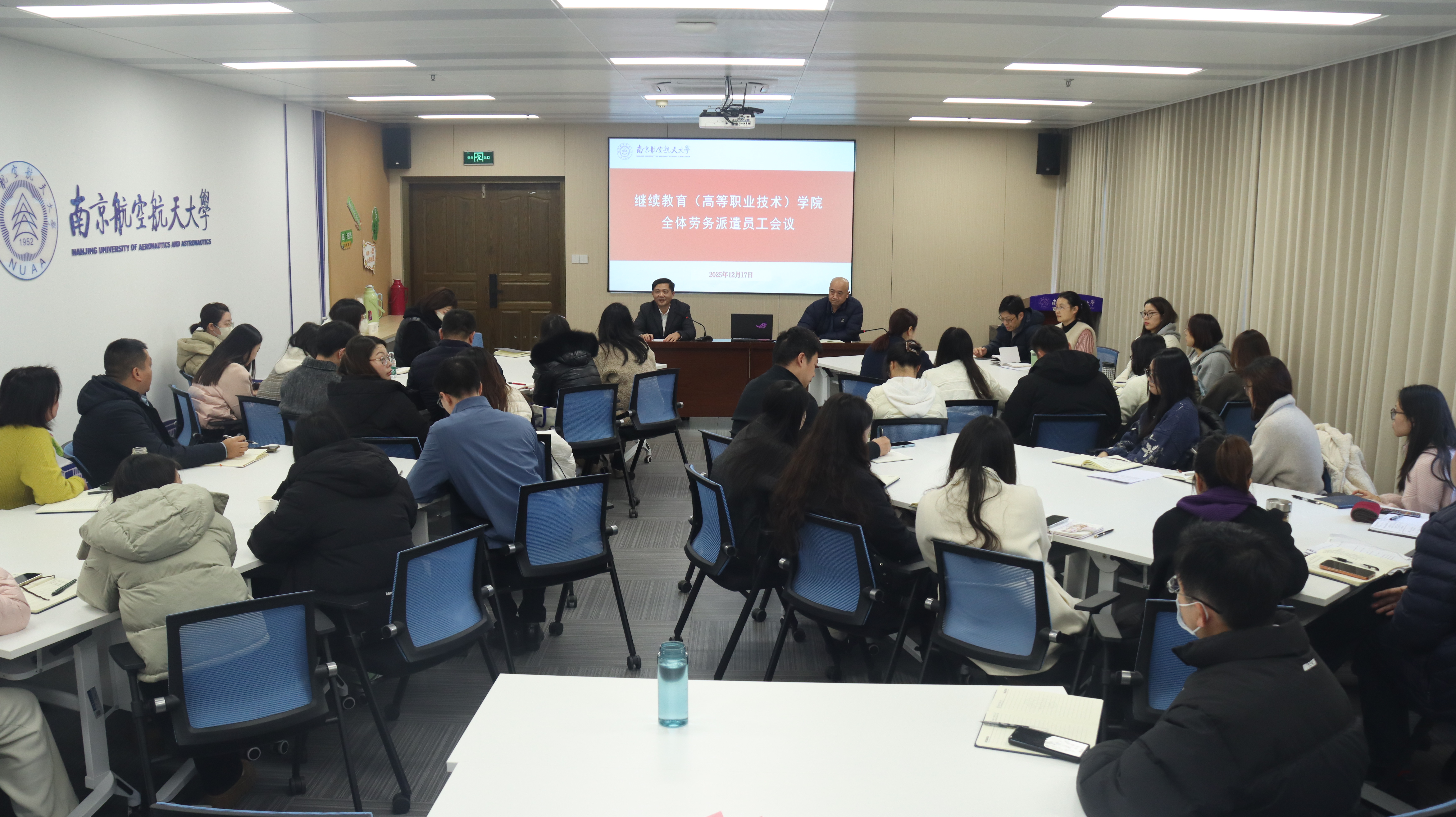 为进一步统一思想、凝聚共识,深入分析学院转型发展面临的机遇与挑战,明确前进方向,激励全体员工以主人翁精神积极投身学院改革与建设,12月17日下午,学院召开全体劳务派遣员工会议。学院党委书记刘建成、院长江爱华以及各部门负责人参加了会议。会议由江爱华主持。