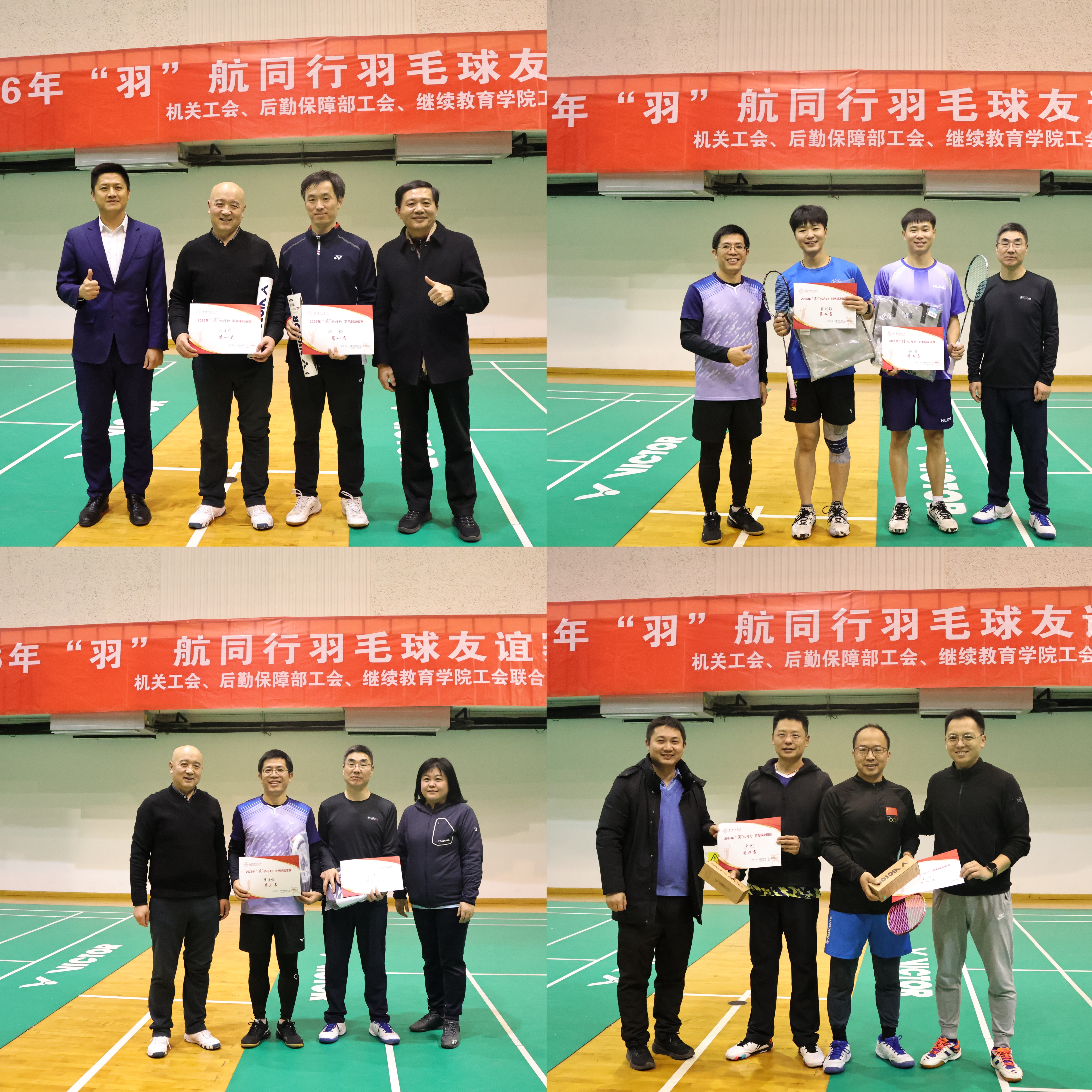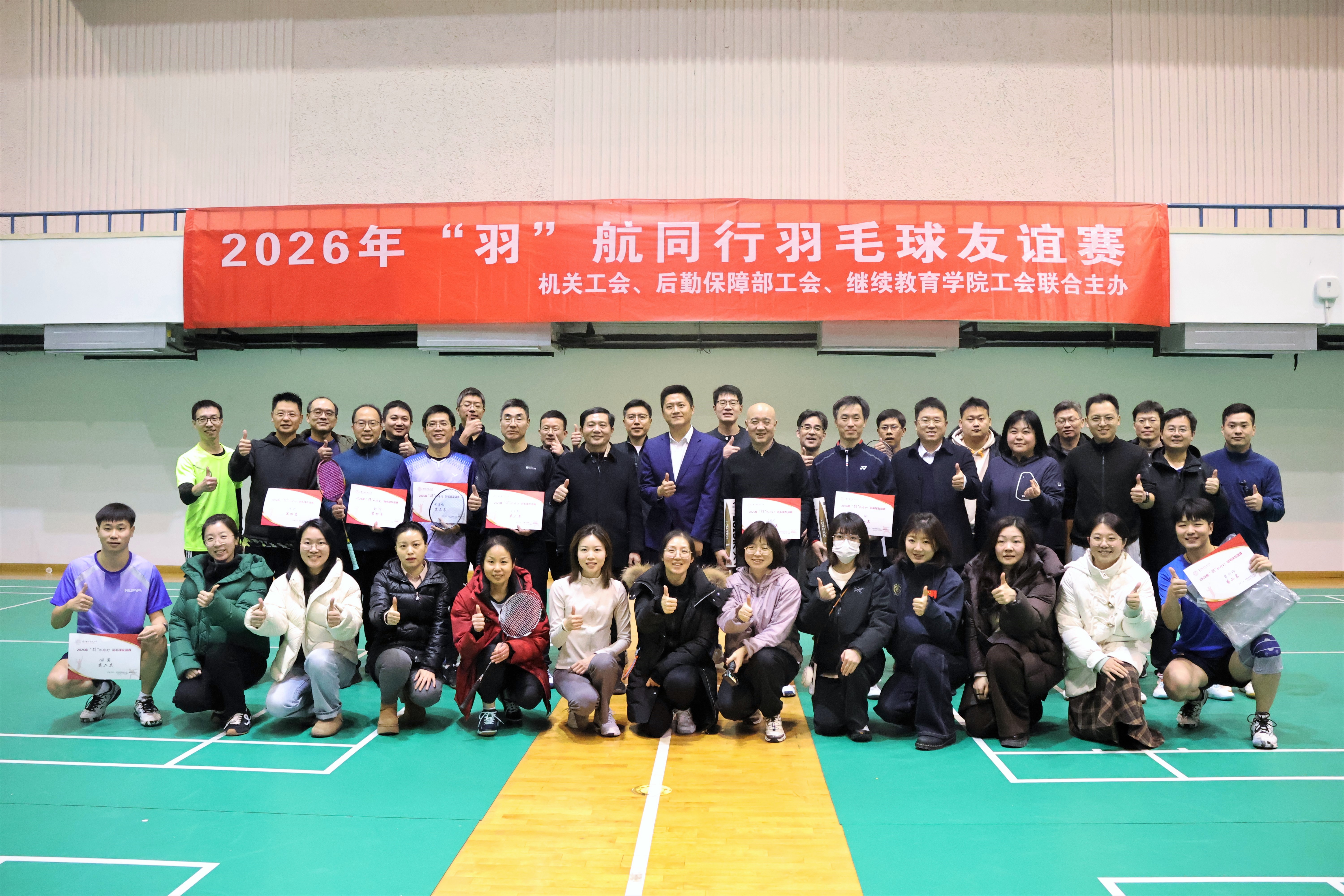 1月23日中午,由校机关工会、后勤保障部工会、红是一世手机版足球网工会联合主办、交通银行御道街支行赞助的2026年“羽”航同行教职工羽毛球友谊赛在欢乐融洽的氛围中顺利举行。来自三个工会的16组32名教职工参加了比赛。