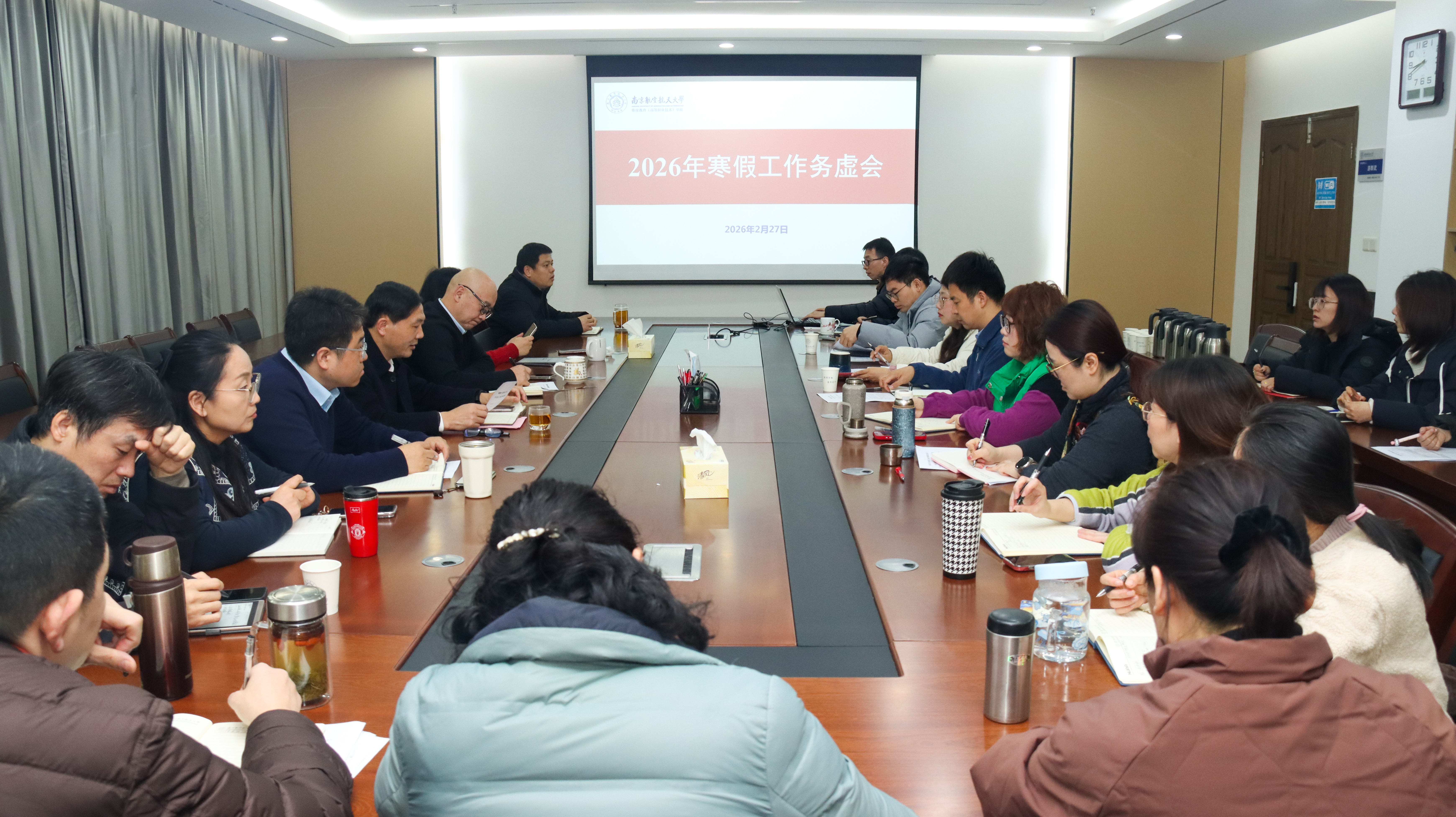 为全面总结寒假工作成效,进一步厘清年度发展思路,明确目标任务,压实工作责任,2月27日上午,学院召开2026年寒假工作务虚会。会议围绕学院2026年重点任务,深入研讨全面推进“十五五”规划与“十年行动计划”落实落地的思路与举措,并首次举行年度目标责任书签订仪式。学院领导、党委委员、部门主要负责人、教工党支部书记及部门副主任、总监参加会议。会议由院长江爱华主持。
