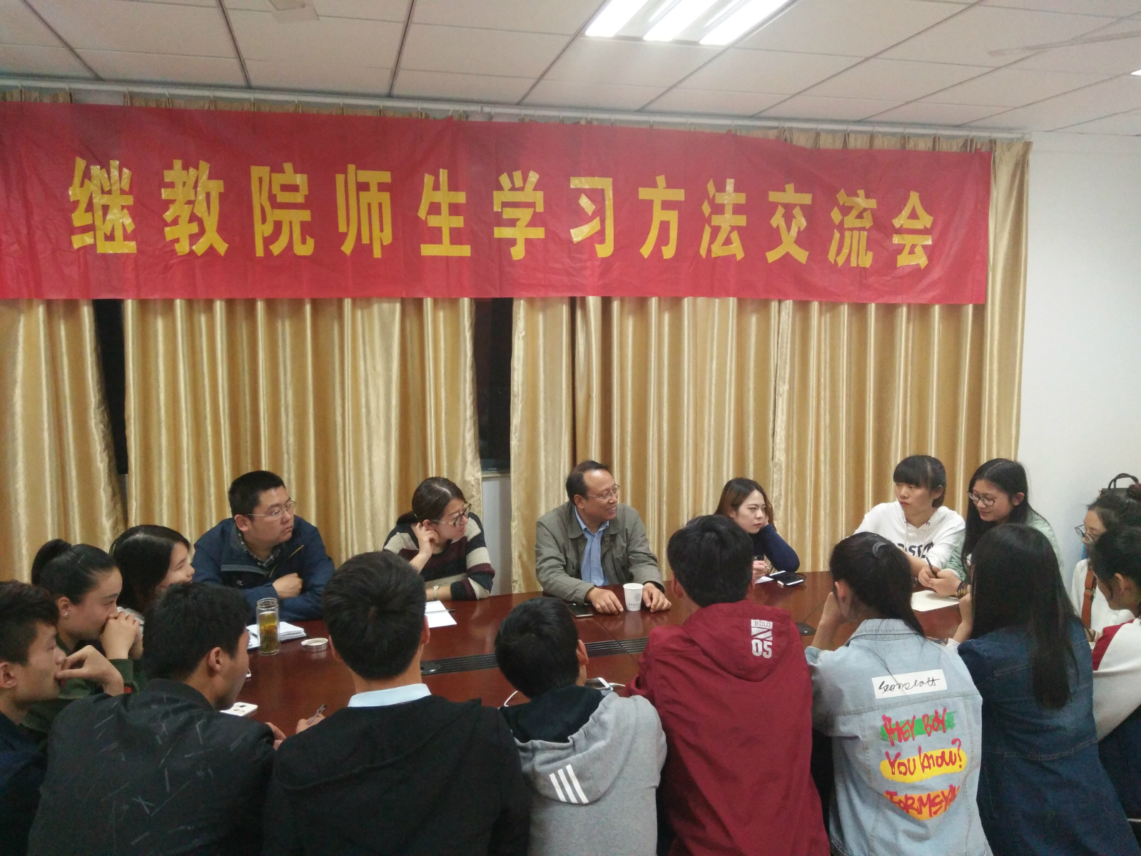 我院2016级金融、电子商务物流专业举办师生学习方法交流会 5月7日晚19:00,我院2016级金融、电子商务物流专业师生学习方法交流会在11号楼300会议室召开。学院教学秘书、专业课教师肖龙介、学院辅导员葛亮、技能培养单位老师王琴、朱静和2016级大一年级电子商务物流专业、金融专业20余名同学代表参加了交流会。 会议尹始,肖龙介老师笑称交流会为“学习分享沙龙”。他告诉大家,要沉下心来寻找适合自己的习惯方法,向优秀的同学看齐,三心二意是学习的大忌。 提问交流环节,大家积极踊跃,就自己在学习过程中遇到的学习方法、就业考研、自身素质能力提升等困惑与老师们进行了充分交流。 随后老师们认真讲述了学习的方法,以及学习和综合能力的关系,引起了同学们激烈的讨论。最后老师们鼓励同学们形成良好的人格素养、道德修养,学会与人沟通,利用所学的各学科知识提升自身的人格魅力、文化底蕴与人文素养。 通过本次交流, 拉近了老师与同学们的距离,促使同学们了解到了自己专业的就业方向以及发展前景,更加明确了自己接下来的学习目标和前进方向。对于未来的学习和生活也有了更加明确和系统的规划,同时本次交流会对优良班风和浓厚学风氛围的营造也产生了积极作用。(葛亮)