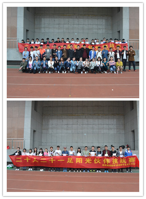 “二十人二十一足”阳光伙伴挑战赛开赛了 经过两日的阴雨缠绵,周六早上的天空显得格外清爽。早上九点整,各代表队便如约而至,在打满了阳光的操场上,各自有条不紊进行赛前热身,青春的活力仿佛感染了所有人,其他进行运动的同学和老师也纷纷加快了自己的节奏。 九点半热身结束,各队统一于主席台前列队集合,各队队长进行抽签,此时,一股股战意弥散开来。因为在经过了一星期的刻苦训练,所有队都坚信着:我们最强!宋毓老师进行赛前动员,对大家进行鼓舞的同时也强调了:enjoy sunshine,enjoy the game。 十点整,比赛便正式开始。在学生会工作人员有序的指引下,各队有条不紊地到达指定场所。在一声哨响后,第一支队伍二十个人便腿连腿,心连心的如箭窜了出去,其节奏之齐,速度之快,口号之响,让观看的老师赞叹不已。但是这也愈发激发了其他队伍的斗志,纷纷摩拳擦掌准备着自己的最好状态。 经过了几支强队的上场后,比赛也进行到了白热化阶段,各参赛队伍成绩也越来越出色,虽然也开始出现了摔倒或绑腿掉落等突发情况。但是大家并未慌乱,迅速整队,再次奋勇前进!激情丝毫不减! 两小时后,这番龙争虎斗终于落下了帷幕。最终CZ04150302 团支部“黑客联盟队”荣获冠军,CZ02150103团支部“只有我们队”荣获亚军,CZ09140302 团支部“winner team”队荣获季军。 这次活动既体现了我们学院学子的活力,也展现出了我们当代大学生团结一致,敢于拼搏的风采。(宋毓、严闯)