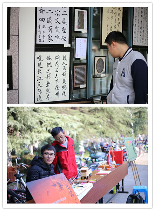 一书一画展才华——记我院第五届“龙跳虎卧,心在飞翔”艺术作品展 12月6日,由院社联书画协会举办的第五届“龙跳虎卧,心在飞翔”艺术作品展在本部A11号楼门前开展。 本次活动受到老师、同学们的热烈欢迎,共计收到作品500余件。书画协会成立评审组对作品进行仔细的筛选,最终评选出180余件作品参加展演。各类作品主题鲜明,意蕴丰富:书法作品或雄浑苍劲,或细腻丰富;绘画作品或栩栩如生,或笔墨横姿;摄影作品主题鲜明、色彩斑斓;手工作品则是精妙绝伦、别出心裁。各作品集思想性、艺术性、观赏性于一体,导向正确、各具特色。在展厅前,还设有留言板和投票箱,观赏者们也都纷纷投出了自己宝贵的一票并对本次活动留下了美好祝福。 艺术作品展不仅陶冶情操修身养性,而且丰富了同学们的课余文化生活,为我院的校园文化增添了浓墨重彩的一笔。(李学东 杨旺)