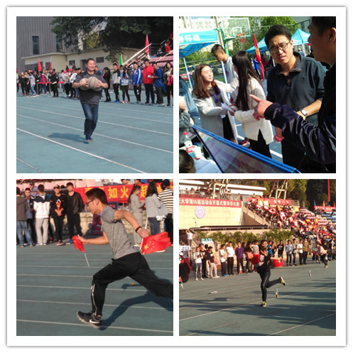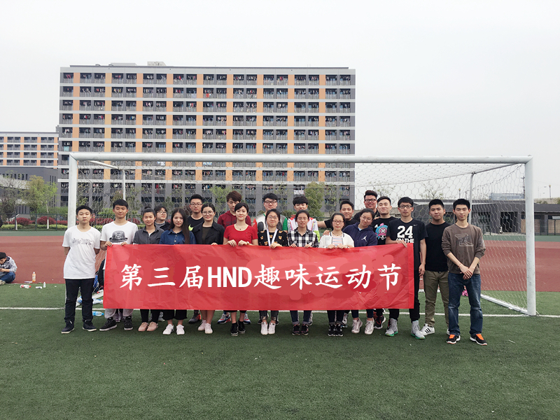 我院举办第三届HND趣味运动会 为响应团委“走下网络、走出宿舍、走向操场”的号召,鼓励同学们积极参与到体育活动中。 下午2点,运动会正式开始。本次运动会共包含“吊瓶子”、“猜词”、“狼抓羊”、“端水跑”和“障碍接力赛”五个项目。这些项目有的要求参赛同学具备“单打独斗”的能力,有的考验同学之间的团队协作能力。参赛同学分为两队,通过几个项目的比赛成绩累计,最终“非凡”队取得了最终胜利。